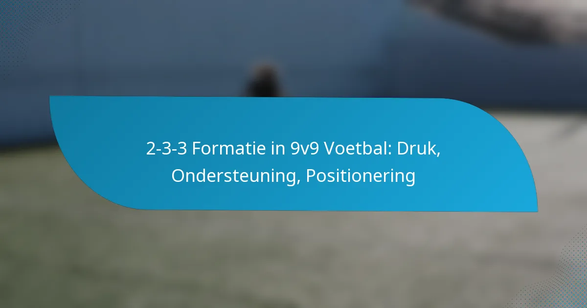 De 2-3-3 formatie in 9v9 voetbal is een tactische opstelling met twee verdedigers, drie middenvelders en drie aanvallers, die een balans vindt tussen aanvallend spel en controle op het middenveld. Deze formatie legt de nadruk op gecoördineerde druk op de baldrager en het belang van onmiddellijke ondersteuning om het balbezit te herwinnen. Effectieve samenwerking en strategische positionering zijn cruciaal, zodat spelers fluiditeit en samenhang kunnen behouden terwijl ze zowel aanvallende als verdedigende strategieën uitvoeren.