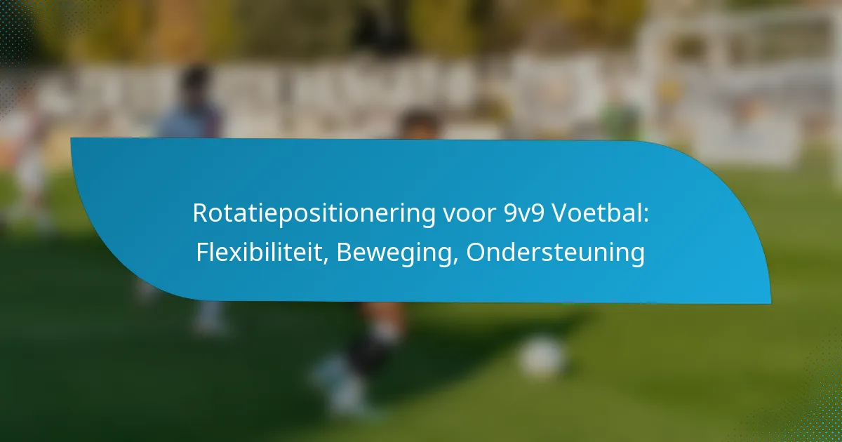 Rotatiepositionering in 9v9 voetbal benadrukt de dynamische beweging en herpositionering van spelers om optimale ruimte en ondersteuning gedurende de wedstrijd te waarborgen. Door flexibiliteit en strategische bewegingspatronen te bevorderen, kunnen spelers zich snel aanpassen aan veranderende situaties, wat het teamwork en de algehele effectiviteit op het veld verbetert.